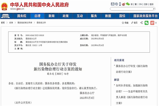 國(guó)務(wù)院出臺(tái)《新污染物治理行動(dòng)方案》!具體內(nèi)容有哪些?